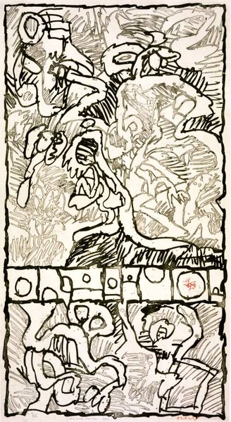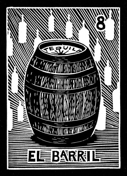Curator: Let's delve into this intriguing piece, a print titled "#31: La Maceta (The Flowerpot)" created by Marina Pallares in 2008. It appears to be an ink woodcut, dominated by a stark black and white palette. Editor: My initial impression is one of contained wildness. The spiky plant bursts from its pot, while the circling birds evoke a sense of restless energy, a challenge to that containment. Curator: I agree, the visual tension is compelling. Examining this artwork, one must consider Pallares's broader exploration of identity, place, and cultural memory. How does the everyday object of a flowerpot, traditionally a symbol of domesticity, become imbued with complex sociopolitical meanings within the Latin American context? Editor: The use of woodcut, a traditionally "folk" medium, I think reinforces this sense of the everyday. It's not high art; it's the art of the people. Pallares is bringing the domestic, even the mundane, into a space for commentary and critique. And look at the pot's surface—swirls almost like microscopic cells under scrutiny, which may also bring a commentary to the cultural meaning of the artwork, or the region in which it belongs to. Curator: Precisely! And the birds encircling the pot – perhaps symbols of freedom, migration, or even confinement? These symbolic layers demand consideration of colonial legacies and socio-economic realities affecting movement, belonging, and displacement. It invites feminist and postcolonial readings, prompting viewers to reflect on the lives marginalized by dominant narratives. Editor: It strikes me that there’s almost an implied narrative here. What happens to the birds and plants, when they co-mingle inside and outside the house? This question connects it directly to ideas of access and even resistance in everyday Latin American life. The political resonates within the personal. It's more than a pleasant still-life. It's about what's possible, the negotiation, the political agency, when two worlds come together. Curator: A provocative reading. For me, it's how this single image speaks to themes that continue to resonate today – social justice, cultural reclamation, and challenging institutional power. Editor: I see it more about giving form and value to these lives, both plant and avian, as it shows their intertwined resilience and ingenuity and even strength in its design and narrative, in the places art has forgotten to tell these types of stories.