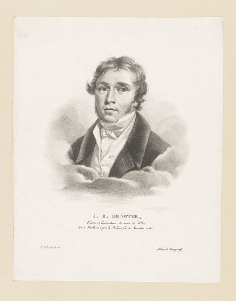 Editor: So this is “Portret van Pierre François De Noter” from 1822, found here at the Rijksmuseum. I am fascinated by how much personality is captured in what is essentially a pencil sketch! How do you read this portrait? Curator: Immediately, I notice the sharp, clear lines defining De Noter’s features. This precision speaks to a desire to immortalize not just his likeness, but also his status, perhaps even his character. Consider the deliberate, forward-facing pose – what message do you think it conveys about his sense of self and how he wishes to be perceived? Editor: I guess it projects a certain confidence? The way he looks straight out implies self-assurance, a man sure of his place. Curator: Precisely! The gaze is unwavering, almost confrontational, in a way that was intended to project self-possession, intellect, and capability in a rising class of newly wealthy merchants and manufacturers. But what do you make of the soft shading and gentler aspects of the rendering – do they contrast or complement the stern impression? Editor: I think it softens his face and lends some approachability... which perhaps highlights an inner depth, and prevents him from looking aloof? Curator: Good observation. These nuances create a narrative. The soft pencil shading creates an almost ethereal effect. It captures a specific cultural moment when classic ideals intertwined with the burgeoning Romantic movement. Editor: This dialogue has encouraged me to view portraiture with an interest in the visual symbols and emotional weight that has had me reviewing portraiture in a new way. Curator: Yes, every detail serves as a portal into understanding the individual, his time, and perhaps most compellingly, a timeless aspect of human aspiration.