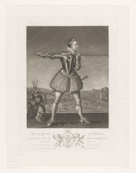This print of Tadeo Ubon, a Spanish war hero, was made by Juan Galvez sometime between the late 18th and early 19th centuries. It is rendered in a monochromatic palette through the technique of etching, a process rooted in craft. In etching, a metal plate is coated with a waxy, acid-resistant material. The artist then scratches an image into this coating, exposing the metal beneath. When acid is applied, it bites into the exposed lines, creating grooves. These grooves hold ink, which is then transferred to paper under pressure. The fine lines and subtle gradations of tone achieved through etching beautifully capture Ubon's likeness and the architectural backdrop. The linear quality of the etching emphasizes the subject's steadfast posture, while the textures evoke the scene's historical context. Prints like these democratized art, making images widely accessible. Beyond aesthetics, it reflects a shift in the means of production. Through this printmaking process, Galvez transformed an act of heroism into a commodity, available for consumption and commemoration.