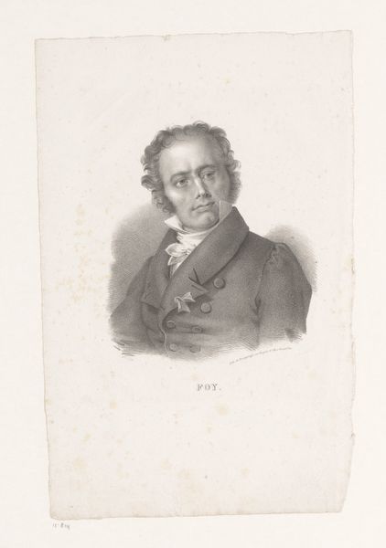 Editor: Here we have Emil Bærentzen’s lithograph portrait of Johan Ludvig Heiberg, dating from around 1838 to 1842. It's a striking image. What particularly stands out to me is the intensity of Heiberg’s gaze. What can you tell me about this piece? Curator: Indeed. It's compelling how Bærentzen captures Heiberg's intellectual presence. Lithographs such as this often served as a way to disseminate images of important cultural figures. Notice how the shading creates a certain… gravity? I see an echo of the Romantic era, but also something more pragmatic in the portrayal. What sort of character do you think Bærentzen tried to express? Editor: Perhaps an idealist? The way he's looking forward, and how sharply his features are captured – maybe it's about projecting authority and vision. Also, it does give him almost a haunting presence, like something out of a gothic novel. Curator: Yes, there’s certainly that Romantic inclination. But look closer. The details, the line work, the specific, slightly severe expression… it speaks of a rational mind. The image walks a line between celebrating Heiberg's persona, but also presenting the intellectual. Does that intellectualism feel in conflict with the Romantic style? Editor: That's an interesting point, I never considered that it could be in conflict with each other, and seeing that through the artist's image definitely broadens my view. Thanks! Curator: My pleasure! Thinking about visual memory helps us re-evaluate the meanings inherent in a work.