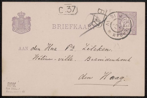 Simon Moulijn created this unused 'Briefkaart aan Philip Zilcken' in the Netherlands at the turn of the 20th century. What can an everyday artifact like this tell us about the broader culture? The stamp in the upper right corner depicts Queen Wilhelmina, and reminds us of the crucial role of the monarchy in Dutch society. The pre-printed word 'Briefkaart' reflects increasing literacy rates, as the need for public scribes declined. The coat of arms on the left indicates a society still rooted in aristocratic symbols. This card also prompts us to consider the networks of artists and patrons who shaped the art world. Philip Zilcken, the intended recipient, was himself a well-known artist and critic. Understanding the connections between figures like Moulijn and Zilcken helps us to understand the artistic ecosystem of the Netherlands at the time. Objects like this may seem humble, but through careful study of visual codes, cultural references, and historical associations, they provide valuable insights into the social conditions that shape artistic production.