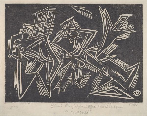This is a lithograph made by Mavis Pusey in 1963. It's all about process, seeing how shapes interact, push and pull against each other. Look at the way Pusey uses these bold, black shapes against the white of the paper. There's no messing around; it's direct and confident. It makes me think about architecture, maybe buildings seen from above or blueprints for something that hasn't been built yet. Notice that slanted rectangle on the bottom right. It feels like it's sliding or maybe about to take off. Pusey's work reminds me a bit of Frank Stella's early black paintings. Both artists are interested in how simple forms can create complex relationships. But where Stella is cool and detached, Pusey feels more intuitive, more like she's playing with the shapes. It's a conversation, a dance of form and space. And like any good conversation, it's full of possibilities.