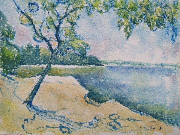 Here we have a landscape painted by Maximilien Luce, an artist who lived through significant social and political change, including the rise of industrialization and the tumultuous years of labor movements in France. Luce was deeply engaged with anarchist philosophies, often portraying the lives of the working class and the impact of industrial labor. While this painting lacks explicit human figures, it can still be understood as reflecting Luce's sensitivity towards social and political issues. The landscape seems to offer a quiet, contemplative space away from the urban and industrial environments Luce frequently depicted. It invites viewers to consider the simple beauty of the natural world. The pointillist technique, with its small distinct dots of color, creates a sense of vibrancy and movement, yet also hints at the fragmentation and alienation that Luce observed in modern society. This landscape, bathed in the colors of sunset, serves as a reminder of the possibility of tranquility and reflection amidst societal complexities.