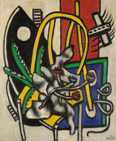 Fernand Léger made this untitled gouache and ink artwork. Léger, a veteran of World War I, lived in a world deeply affected by industrialization and conflict. Here, primary colors and mechanical shapes capture the energy of a society in transition. But is the transition progressive or destructive? Léger’s post-war work suggests that human figures could be rebuilt, perhaps healed, after the trauma of industrialized war. The tubes and biomorphic shapes become a visual vocabulary for a new kind of body, one that fuses human form with mechanical precision. Consider, too, the way Léger flattens space. By removing traditional perspective, he asks us to see the world in a new way. The absence of a clear subject invites us to find our own meaning, our own reflections within the abstract forms. This piece mirrors the fragmented experience of modern life, yet offers a sense of rebuilding, a sense of hope amid chaos.