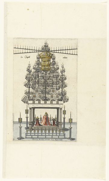 Pieter van der Borcht created this print of ‘The Portuguese Arch of Honor’ in 1599. The artwork shows a temporary structure erected to celebrate a state visit or a significant event in Portugal. Elaborate temporary structures like this one were a common feature of civic life in the Netherlands, especially during periods of political transition or celebration. They were a form of propaganda intended to impress visitors and locals alike, reinforcing the authority and legitimacy of the ruling powers. The arch is adorned with allegorical figures, coats of arms, and scenes of Portuguese history, all designed to convey messages about power, wealth, and cultural achievement. Note the classical architectural elements, reflecting the influence of the Renaissance and a desire to associate the Portuguese monarchy with the glory of ancient empires. To fully understand this image, one needs to consult historical records: accounts of state visits, descriptions of civic ceremonies, and the emblem books which were popular at the time. This reveals the social and institutional contexts in which the artwork was created and consumed. The image is a fascinating window into the complex relationship between art, politics, and society in the early modern period.