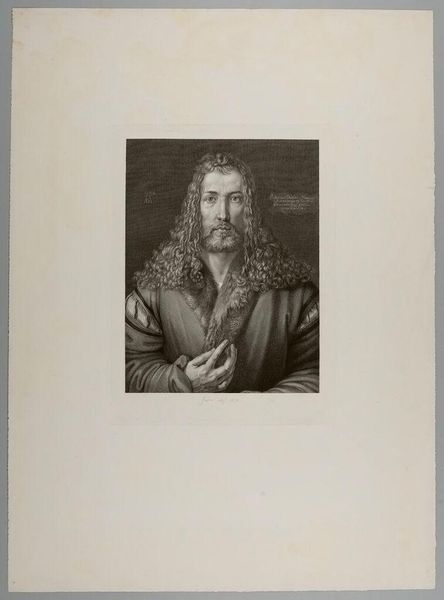 Editor: Here we have François Forster's portrait of Albrecht Dürer, housed at Harvard Art Museums. I'm immediately drawn to the texture created by the intricate lines of the engraving. What visual elements stand out to you? Curator: The meticulous detail is certainly striking. Note the contrasting textures: the soft fur collar against the sharply defined lines of the face. These juxtapose to form a complex interplay, demanding close visual engagement. Editor: It’s almost like the artist wants us to examine every line and shadow. Curator: Precisely. The composition itself—the tight framing and direct gaze—compels us to confront the subject. It's a masterful demonstration of form dictating content. Editor: I never considered how the framing contributes so much to the overall effect! Curator: Indeed. The artist uses the structure of the composition to involve us in their visual language. I find this an interesting contrast to other Dürer portraits. Editor: That makes sense. I’ll definitely look more closely at framing choices from now on.