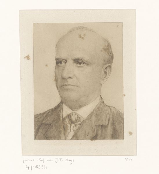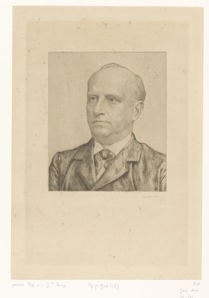 Jan Veth made this portrait of Johannes Theodoor Buys, using graphite on paper. Veth's choice of graphite, a readily available and relatively inexpensive material, speaks volumes. Its monochromatic nature emphasizes line and form, and the subtle gradations achieved reflect a commitment to close observation, capturing Buys' likeness with nuanced detail. This approach invites us to consider the social context of portraiture at the time, typically reserved for the wealthy elite, and how Veth’s choice democratizes the genre. The process of drawing itself, with its inherent immediacy, imbues the artwork with a sense of intimacy. Unlike painting, which can involve layering and revision, drawing often reveals the artist’s hand and the directness of their vision. This quality emphasizes the labor involved in its creation. The precision and control required to render Buys’ features highlight Veth's technical skill. Consider, then, how the material and making of this work invite us to look beyond the subject, and to recognize the value of everyday materials and artistic processes.