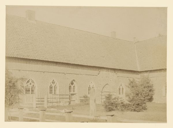 Curator: There’s a hushed, almost reverential stillness that emanates from this early 20th-century photograph. Editor: Yes, it’s undeniably serene. The sepia tones give it a quality like faded memory, a half-remembered dream of a simpler time. It invites quiet contemplation. Curator: Indeed. What we’re looking at is a photograph, created around 1907 by Folkert Idzes de Jong. It’s titled "Exterior of a Church Building on the Kerkberg in Beek (Gelderland)". We see exactly that: the church perched atop a hill in the Gelderland province. It seems steeped in history and the everyday lives of its parishioners. Editor: The framing is interesting too; almost three-quarters of the picture plane is filled with lush foliage and an ascending road, leaving less space for the church itself. I am getting a deep sense of community being nurtured by nature. Curator: Precisely. Note the presence of architecture set amid the surrounding foliage. Churches have often been focal points for organizing and even asserting control, but this church is embraced and literally encircled by the community. There’s a tangible feeling of spiritual continuity present here. Editor: And look at the electric cables, which I find somewhat out of place: symbols of modernity juxtaposed against this timeless structure. This church existed at a historic turning point. Curator: An excellent observation. This single visual encapsulates centuries of religious practice coexisting alongside emerging technology. The artist consciously included it, I believe, because this particular village had strong traditions but also was embracing the 20th-century trends. It brings to question where spiritual, societal, and technological powers converge or diverge? Editor: Yes, indeed. All those implications make me want to contemplate further the power and function that historic architecture can hold for generations to come. Curator: Agreed. A singular image capturing a community’s spirit across temporal dimensions.