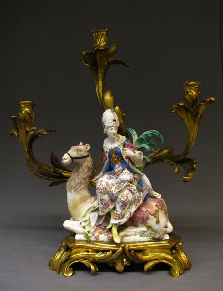 This is a porcelain and bronze candelabra, titled "America," created by the Meissen Manufactory. It is a decorative piece, but it speaks volumes about the European perception of the Americas. The figure is adorned with stereotypical attributes: a feathered headdress, a profusion of flowers, and an alligator. These elements, while intended to represent the exoticism of the Americas, are rife with colonial assumptions and misrepresentations. The artist likely never set foot on American soil, relying instead on secondhand accounts and biased imagery to inform their work. The figure’s presentation is highly gendered, yet ambiguous. The figure, while appearing womanly, is likely intended to be male, but the artist has adorned them with softer, more traditionally feminine features. This ambiguity highlights the complexities of cultural exchange and the power dynamics inherent in representation. It’s a testament to how the colonizers envisioned and wanted to depict the colonized world. This candelabra offers a glimpse into the mindset of 18th-century Europe and its relationship with the "New World," revealing the fantasies, projections, and power imbalances that shaped the colonial project.