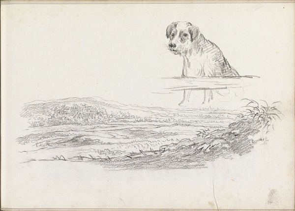 Curator: Here we have an untitled graphite sketch of a dog, attributed to the British School. It's quite small, only about 8 by 11 centimeters. Editor: My first thought is, that's a very serious dog! All business. There's a feeling of contained energy, like it's about to spring into action. Curator: Perhaps it's meant to represent loyalty, watchfulness, or guidance? Dogs often embody those qualities in art. Editor: Could be a symbol, yes, or maybe the artist just loved dogs. I find its vulnerability quite endearing—the sketchiness almost lets us glimpse the artist's fleeting impression. Like, "Quick, gotta capture this dog!" Curator: It reminds me that sketches are not just preparatory works; they can be little windows into an artist's process, capturing a moment of inspiration. Editor: Right. A little, immediate world. Curator: It invites us to slow down and appreciate the beauty in the everyday. Editor: Exactly.