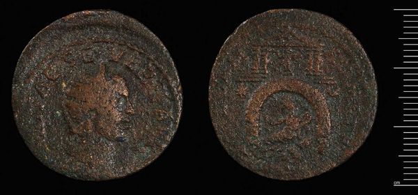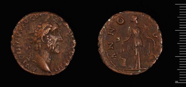 Editor: Here we have a coin, specifically, a Coin of the Island of Kos under Septimius Severus. Looking at this object, I am struck by its weathered appearance. What stories do you think it could tell? Curator: Oh, this little guy? It whispers tales of empires, trade, and the very touch of human hands across millennia! Imagine the Roman official who first held it, or the merchant in Kos. Coins are tangible time capsules. What catches your eye about the imagery? Editor: I see figures, but it's hard to make them out clearly. Curator: That's the beauty, isn't it? The mystery! It invites us to truly look, to ponder. Septimius Severus had a knack for making his mark, quite literally. It's more than just currency; it's propaganda, art, history, all pressed into a small, weighty circle. Editor: It really makes you think about how objects carry so much more than their intended purpose. Curator: Absolutely! Even mundane objects like this coin transform with time, accumulating layers of meaning.