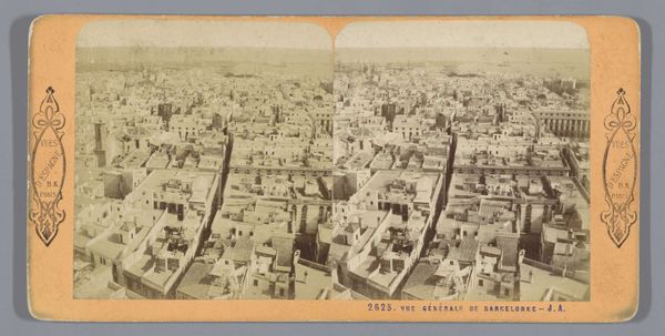This albumen print titled "Gezicht op Cádiz, gezien vanaf een wachttoren" was created by Jean Andrieu in the 19th century. The pale sepia tones and detailed aerial perspective give it a unique structural quality. The composition is dominated by the geometric arrangements of buildings, creating a grid-like pattern across the landscape. The photograph's structure invites us to consider the interplay between representation and reality. The strict organization of space and form reflects a broader cultural desire to categorize and understand the world. The use of perspective not only demonstrates a mastery of technique, but also suggests a controlled, rational view of the city. Andrieu's work destabilizes any singular reading, prompting us to reflect on the cultural and intellectual contexts that shape our perception. This seemingly straightforward image is, in fact, a complex interplay of form and idea, inviting continuous interpretation.