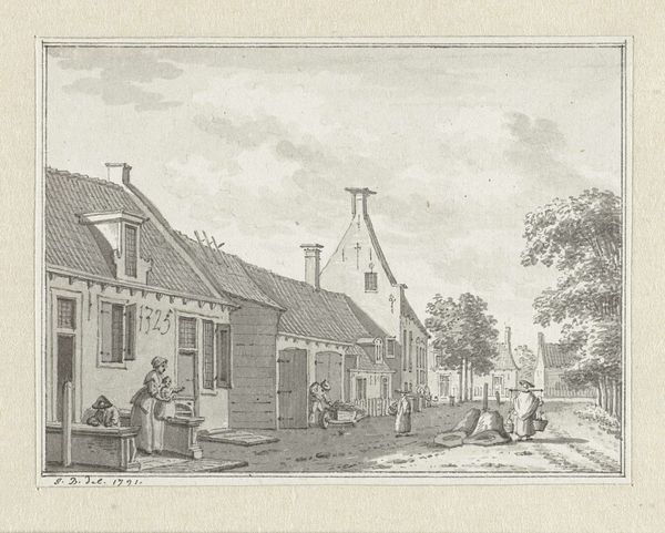 Curator: Ah, I adore this sketch by David Teniers the Younger; it's called "Men Playing Boules Outside Tavern." It seems to hum with a quiet afternoon energy. What’s your take on it? Editor: The sepia tones give it a nostalgic feel, almost as if recalling a distant memory. I am particularly drawn to its detailed depiction of working-class life, the kind of genre scene that speaks volumes about social structures. Curator: Precisely. Teniers really captures that unvarnished glimpse into everyday existence, doesn't he? I feel a kinship with the fella perched on the bench; watching instead of playing always felt like an underappreciated art. The simple lines creating complex feelings is astounding! Editor: The etching, rendered with pen and ink, provides not just visual pleasure, but prompts thinking. Who is welcome? Who is excluded? Why the artist chose to represent those who toil as men and women playing boules offers some clue, I suppose. Curator: Boules as an allegory for broader society, hmmm. And look how cleverly he balances light and shadow – gives it this almost stage-lit quality, which definitely feeds into that idea. I find Teniers has a knack for finding the theatricality in everyday existence. Editor: True. I keep wondering though: for whom are such images made? How complicit are the representations with broader power structures? The tavern setting certainly situates working-class men’s recreation in public spheres... the domain of a certain social order. Curator: It makes me consider visibility and documentation – the politics of observation in the quotidian, if I’m trying to sound smarter than I am. To me this looks to be the most gentle critique. These are men taking simple joys outside a public house; Teniers saw something wonderful and documented it, don't you agree? Editor: The wonderful is always contextualized through layers of history, experience, social positioning. Curator: Indeed! I may have to add to my viewing notes. The dance between artist and audience! Always so very exciting. Editor: So much more exciting than the game!