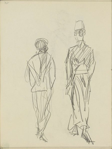 Isaac Israels made this sketch, Staande Vrouw, op de rug gezien, on paper, and it's a dance of tentative marks, a sort of searching for the form. It’s just pencil on paper, but that’s the beauty of it, right? Look at how he suggests the fall of the fabric, the way it clings and drapes. Israels isn't trying to show us a real woman so much as the feeling of a figure, an essence. See that little scribble that suggests the hair? It's not about detail; it's about the gesture, the overall impression. The best drawings can often feel as though they’re still in the process of becoming. I love to see how the backs of figures are done. It reminds me a bit of Degas and the way he found intimacy in the everyday. With a sketch like this, you see art as an ongoing conversation rather than a declaration.