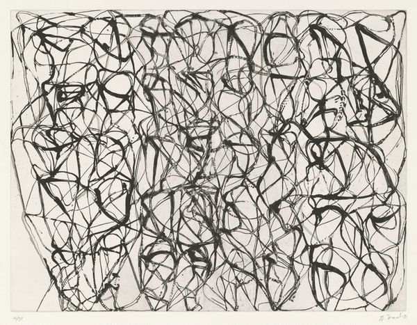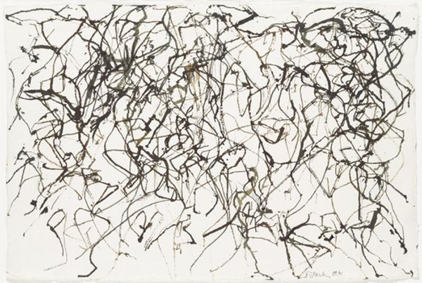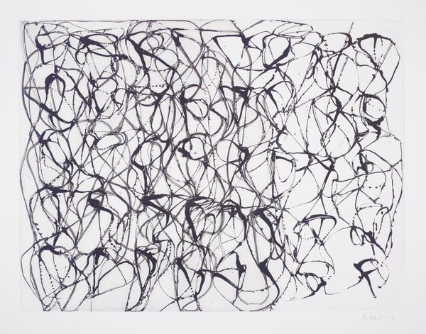Brice Marden made this drawing, “Don’t Bungle the Jungle”, with ink on paper, so you know it’s kinda loose, like a doodle but one with real intentions, for sure. It’s all about the lines, a whole lotta looping and tangling going on. I see him feeling his way through the space, figuring things out as he goes, one mark at a time. The ink isn’t precious, it drips and spatters, letting the paper do its thing. See how the black lines are sometimes broken up by bits of blue or gray? It's like a sneaky peek-a-boo of color. For me, it’s a reminder that art doesn’t always have to be neat and tidy. Think of Cy Twombly's scribbles, but Marden’s putting his own spin on it, maybe a little more restrained, but still wild. It's an ongoing chat between artists, bouncing ideas off each other, and making something new, you know?