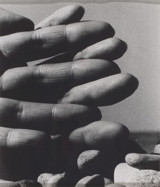 Al Taylor made this black and white photograph, A. (All Thumbs), at some point during his lifetime; he died in 1999. It's a photograph, but it feels like a drawing because of the stark contrast. Look at the way the thumbprints are so clearly defined and almost symmetrical, yet the painted forms on top are loose and imperfect. It’s about seeing how the physical and the abstract sort of bounce off each other. Taylor’s work often plays with the mundane, taking everyday objects and situations and turning them into something poetic. Take the painted circle behind the left thumb. It’s not quite a circle, is it? There's a thick, drippy quality to it, like he didn’t fuss over it too much. It reminds me of Richard Tuttle, another artist who finds beauty in the off-kilter. This piece is all about that tension, between precision and play, the hand and the eye, and the real and the imagined.