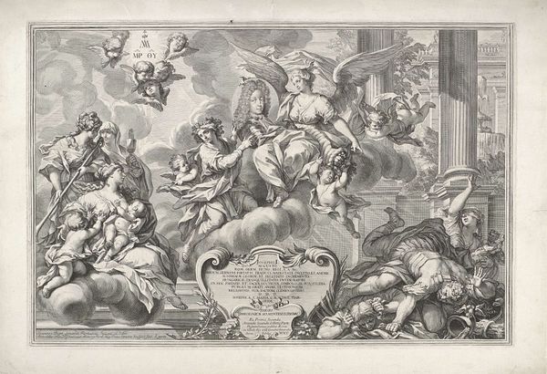 Curator: This is Pietro Aquila’s "Galeriae Farnesianae: Triumph of Bacchus," currently residing at the Harvard Art Museums. Aquila lived from 1650 to 1700. Editor: My goodness, it's a whirlwind of bodies and beasts! It feels almost overwhelming, a chaotic celebration caught mid-frenzy. Curator: The Triumph of Bacchus is a recurring motif, representing not just the god of wine and revelry, but also freedom, ecstasy, and the untamed forces of nature. Notice the figures around Bacchus are in ecstasy. Editor: Yes, that ecstatic fervor is palpable. Though, looking closer, there's a darker edge to it, isn't there? That unchecked passion can tip into something destructive. Curator: Precisely. The bacchanal has always been a symbol of both liberation and potential societal breakdown. The symbols are potent and can be interpreted on many levels. Editor: It really captures that duality, doesn’t it? I'm left wondering whether to join the party or run for my life. Curator: A fitting response, I think, to an image steeped in such enduring and conflicting ideas. Editor: I suppose that's the genius of it, isn't it? Leaving us with more questions than answers, still reeling from the sheer exuberance.