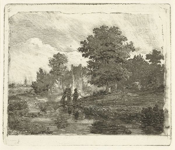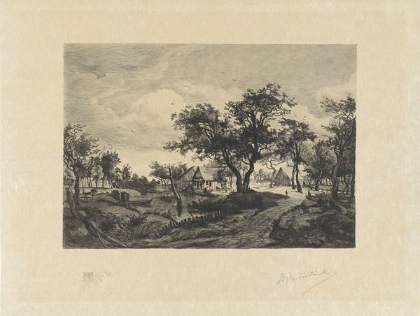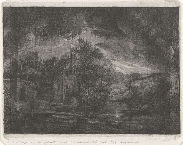 Willem Steelink the Second created this landscape by moonlight as an etching. It is a scene of rural tranquility, bathed in soft light, but what might it tell us about Dutch society at the time? Made in the late 19th century, the image speaks to the prevailing artistic trends, rooted in the Hague School's interpretation of French Realism, and a desire to record the everyday life of the Netherlands. However, look closer and you'll notice the church steeple in the background. What role did the church play at this time in the Netherlands? The Netherlands in this period was undergoing significant social and economic change, with industrialization and urbanization reshaping the country. A print like this might reflect a longing for a simpler, pre-industrial past, or even offer a commentary on these changes. Art historians consult archival material such as exhibition reviews and artists' letters to understand such works in detail. This gives us an understanding of art as tied to social context.