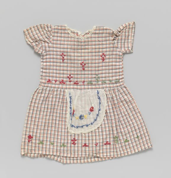 Curator: So, we have before us Dirkje Ariaantje Brand's "Nationale feestrok mevrouw Brand," a mixed-media textile piece created sometime between 1945 and 1951. Editor: That’s right. It looks like a skirt made from all sorts of fabric scraps, almost like a quilt. It has a cheerful and nostalgic feeling. What do you see in this piece? Curator: Beyond the apparent domesticity, I see a powerful statement about postwar identity and resourcefulness. Think about the context: the Netherlands just after liberation. Resources were scarce. Making something new often meant repurposing the old. This skirt, then, becomes a symbol of resilience, doesn’t it? What stories do you imagine these fabrics might tell? Editor: It's true! Some scraps seem older than others. So each patch may come with stories that represent the Dutch struggle? It feels really personal that way. Curator: Exactly! The act of stitching these disparate pieces together can be seen as an act of collective healing and rebuilding. It could also serve as an assertion of female agency in a time of societal upheaval. This connects it to feminist theory. What impact do you think an ordinary garment, imbued with this historical significance, may have in shifting our understanding of both "craft" and "art"? Editor: I see your point, as that really encourages one to reevaluate not only history but also value and creativity in everyday practices. Curator: Precisely. It blurs the lines and pushes for broader interpretation. Looking at this skirt has opened my eyes to the quiet activism embedded in everyday acts of creation and remembrance. Editor: Absolutely, this skirt tells such a wonderful story!