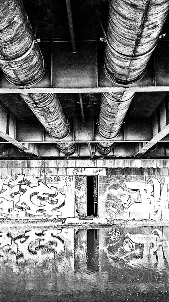 This untitled photograph, "Smelly Pool", was made by Alfred Freddy Krupa sometime after his birth in 1971. The photograph plays with light and shadow in such a way that it evokes a feeling of both urban decay and an almost holy, spiritual space. The walls that create the tunnel in this work are covered with graffiti. I am drawn to the contrast between the hard lines of the architectural structure and the chaotic, organic nature of the graffiti. It’s like two different worlds colliding. The reflections in the water add another layer of complexity, distorting the already fragmented reality. There’s a strong sense of realism here, but also abstraction. It reminds me of the way Robert Rauschenberg combined painting and found objects to challenge traditional notions of art. Like Rauschenberg, Krupa invites us to see the beauty in the everyday, the overlooked, and the discarded. It challenges our perception and asks us to reconsider what we consider art.