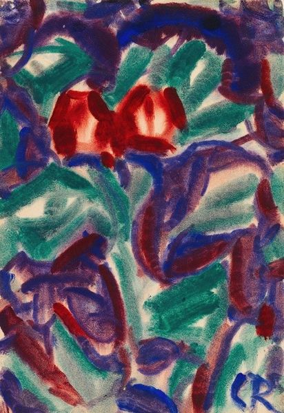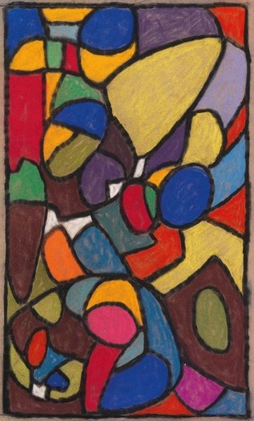 Curator: Here we have Adolf Hölzel's "Abstrakte Komposition, Hochformat," an abstract composition with a vertical orientation. Editor: It's incredibly vibrant. All these reds, purples, oranges fighting for space – it feels…restless. I can almost feel the textured surface just by looking at it. Curator: Hölzel was quite influential in early 20th-century abstraction. He taught many prominent artists. His theories focused on color and geometric form, as we see here. He saw abstraction as having a spiritual dimension. Editor: I'm curious about the materials. You know, you can really see the graininess; perhaps it is mixed media with either pastel, acrylic paint, or perhaps some sort of crayon. It gives it an almost rough, raw energy, definitely less polished than some other abstract expressionists. Was he consciously rejecting traditional fine art polish? Curator: He sought to purify painting, actually, moving away from representational art toward expressing pure emotion and form. This coincides with early 20th century art criticisms arguing over photography's ability to reproduce accurate depictions which, thus, rendered representational painting unnecessary and even obsolete to some. Editor: Interesting. To me, that rough texture undermines the idea of 'pure' anything. Materials always have a history, right? Pigments have to be mined, binders have to be processed...it tethers the 'pure' emotion to something tangible and real. Curator: Certainly. And it reminds us that even seemingly freeform abstraction is deeply embedded in its time, reflective of artistic manifestos. Consider the institutional pressures, too – what were the exhibition spaces demanding, or perhaps, resisting? Editor: True. The size also informs our viewing of the art. It looks very domestic-scaled rather than for public spectacle, inviting intimate inspection. Was that typical? Curator: For his earlier works, yes. He later transitioned to larger formats more typical of public displays during his appointment at the Stuttgart Academy. This shift mirrors how abstract expressionism came to be associated with notions of American freedom during the Cold War. Editor: So, even something as seemingly free as abstract art is always working within constraints, political landscapes, and physical limits of material. Thanks, looking at the production that went into making this image opened my mind and expanded how I saw the final artwork. Curator: Exactly. Thinking of the painting as both an aesthetic object and a product shaped by various forces enriches our viewing experience and illuminates the socio-political contexts from which artwork is made.