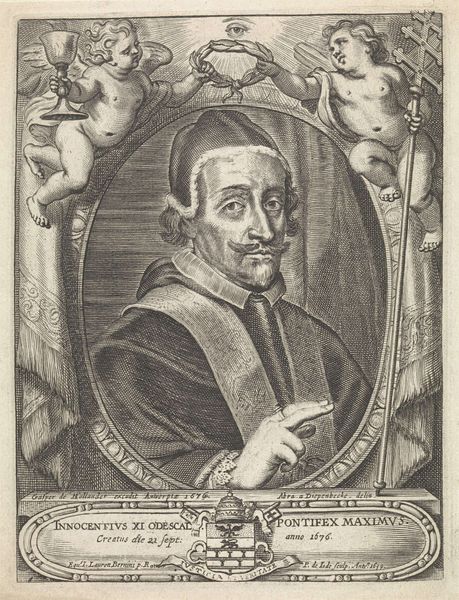 This print of Pope Alexander the Seventh was made in Antwerp, in 1655, by Theodor van Merlen. Notice the intricacy of the lines, all achieved through the technique of engraving, where the artist would have used a tool called a burin to cut lines directly into a metal plate. The resulting image has a crisp, precise quality; that reflects the labor-intensive process used to produce it. Each line etched by hand, demanding skill and patience from the engraver, resulting in sharp contrasts and fine detail. The texture of the paper further enhances the tactile quality of the print. Engraving was not only a means of artistic expression, but also a key method for disseminating information and imagery across Europe. Prints like this one played a crucial role in shaping public perception and solidifying the authority of figures like Pope Alexander the Seventh. The artistry and craft of the print, therefore, went hand in hand with the social and political functions it served.