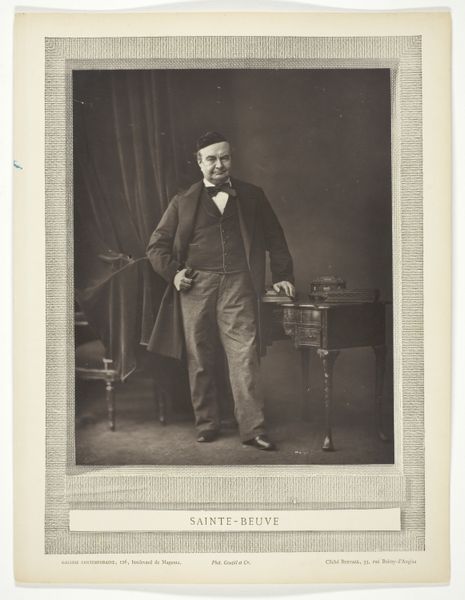 Bertall created this portrait of Charles Augustin Sainte-Beuve using photography in the 19th century. Sainte-Beuve was a hugely influential literary critic during a period of significant social and political change in France. Consider what it meant to be a man of letters during the 1800s. Sainte-Beuve’s confident stance and direct gaze exude an air of intellectual authority, a posture available to few at the time. His clothing marks him as part of the bourgeoisie, while the setting – complete with heavy curtain and writing desk – evokes a sense of cultivated gentility. Yet, despite these markers of privilege, Sainte-Beuve himself experienced exclusion as a result of his appearance and background. This photograph invites us to reflect on the complexities of identity and representation. It prompts us to ask: who has the power to shape narratives, and whose stories remain untold? How do our personal experiences intersect with broader social forces to shape our sense of self and our place in the world?