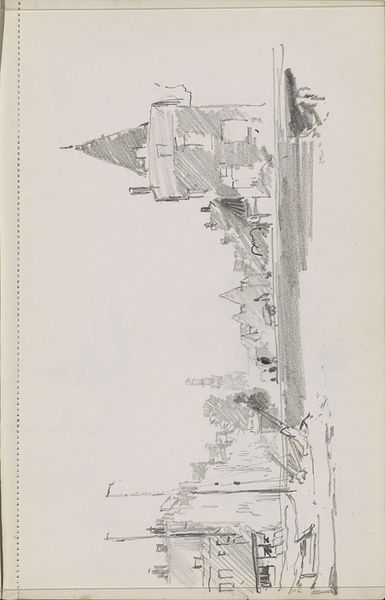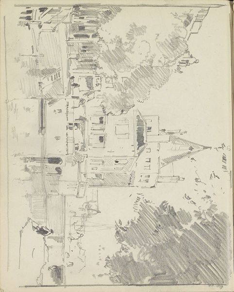 Andreas Schelfhout’s pencil drawing presents a serene winter scene, evoking a calm yet subtly animated atmosphere. The composition, dominated by the stark geometry of buildings and the windmill, contrasts with the soft, fluid lines of the frozen landscape and sky. Schelfhout masterfully uses line to define form and space. Notice how the architectural elements are rendered with precise, almost clinical lines, providing a structured backdrop for the more freely drawn figures of the skaters. These figures, mere suggestions of human form, introduce movement and life, disrupting the static nature of the built environment. The drawing exists as a study; it seems to capture a fleeting moment. The interplay between the rigidity of the architecture and the spontaneity of human activity embodies a semiotic dialogue between order and chaos, control and freedom. These structures destabilize fixed meanings, inviting us to find harmony between the elements.