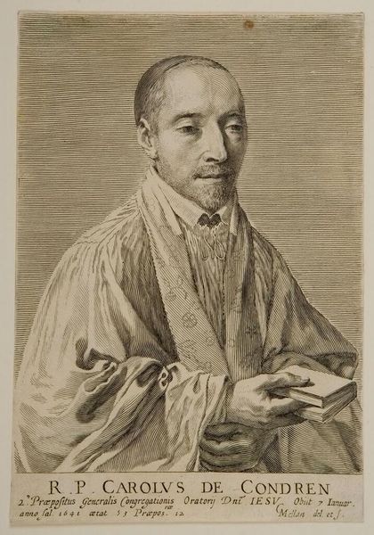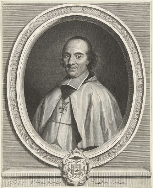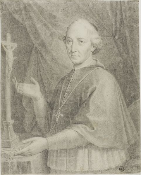 Pompeo Batoni painted this portrait of Cardinal Jean-François Joseph de Rochechouart using oils, and it presents us with a study in contrasts. Visually, the eye is immediately drawn to the vibrant red of the Cardinal's cape, which dominates the composition. This bold color clashes subtly with the more subdued tones of his face and the surrounding background. Note how Batoni uses the texture of the paint to create a sheen on the red fabric, emphasizing its richness and the Cardinal’s status. The severe, almost geometric, folds of the cape contrast with the delicate, intricate lace of his sleeves, which peek out from beneath. This contrast isn't merely decorative; it reflects the period's fascination with displaying wealth and power through detailed, symbolic representation. Batoni uses these elements to engage with broader themes of hierarchy and representation. He presents the Cardinal as a figure of authority, whose visual image is meticulously constructed to convey power.