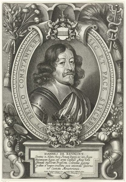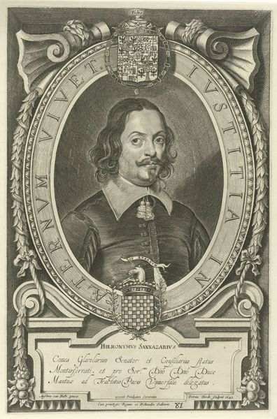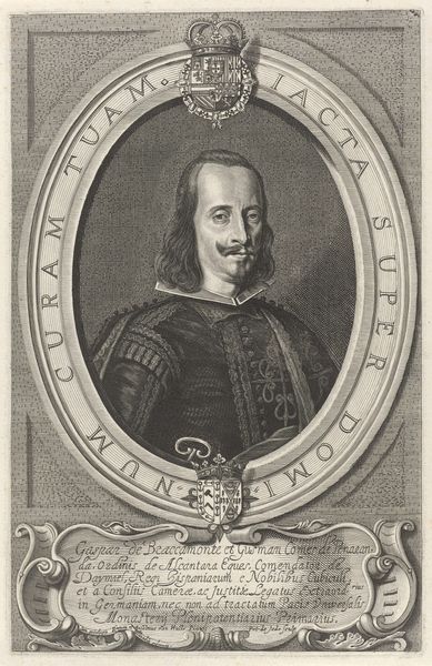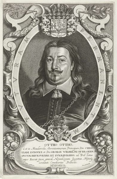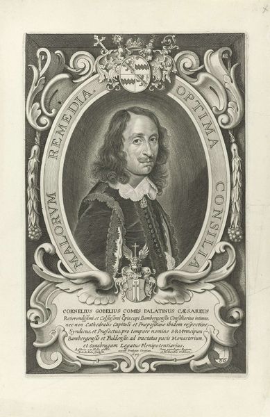 This is Pieter de Jode the Younger’s portrait of Georg Christoph, made using engraving techniques sometime in the 17th century. During this time, portraiture served as a powerful tool for conveying social status and political allegiances. Georg Christoph, a nobleman of the Holy Roman Empire, is depicted within an oval frame, surrounded by Latin inscriptions and heraldic symbols of power. His identity is constructed through this visual language of nobility, reflecting the hierarchical society of the era. The choice to immortalize Christoph through portraiture speaks volumes about his personal ambition, and the values of his class. What does it mean to curate your own image? Think about the expectations for men of status, and how Christoph presents himself. The gaze is direct, the attire dignified; an assertion of authority during a period marked by political upheaval. How do his choices reflect societal expectations, or challenge the status quo?