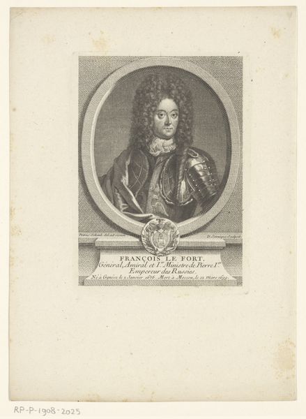 Curator: This portrait, "Portret van keizer Leopold I," created between 1755 and 1765 by Jean-Charles François, is an engraving. It's amazing to see the level of detail achieved through this medium. What are your first thoughts? Editor: I'm struck by how the image itself mimics the subject it represents, Emperor Leopold. The crispness of the engraving makes the portrait feel very official, almost like currency, yet distant, due to the nature of the black and white engraving. I wonder, what are your views on it? Curator: From a materialist perspective, consider the role of the engraver. François wasn’t just an artist, he was a skilled labourer participating in a specific economic system. This engraving was likely mass-produced for distribution, fulfilling a propagandistic function: reinforcing Leopold's image and authority across society. Think about the materials – the copper plate, the ink, the paper - each with their own story of production and consumption. How does this understanding influence how you see Leopold's portrayal? Editor: So, focusing on the 'how' of making it highlights the emperor's PR machine rather than simply the image of a leader? Did these materials impact how ordinary citizens perceived Leopold? Curator: Precisely. The availability of these images, reproduced en masse, meant more widespread exposure, but also a potential dilution of the Emperor’s mystique. Engravings democratized art, to some extent, bringing imagery formerly restricted to the wealthy into broader circulation. And that changed the artwork into something political, impacting his standing. It wasn’t just a picture; it was a carefully manufactured commodity with tangible societal influence. Editor: So, by looking at the engraving itself, we are gaining a different understanding about its role at that time! Thanks! Curator: Indeed. Material analysis gives an alternative narrative of the artwork which provides the context of labour and industry involved in image-making and how it influenced the public’s consumption and understanding of figures like Leopold.