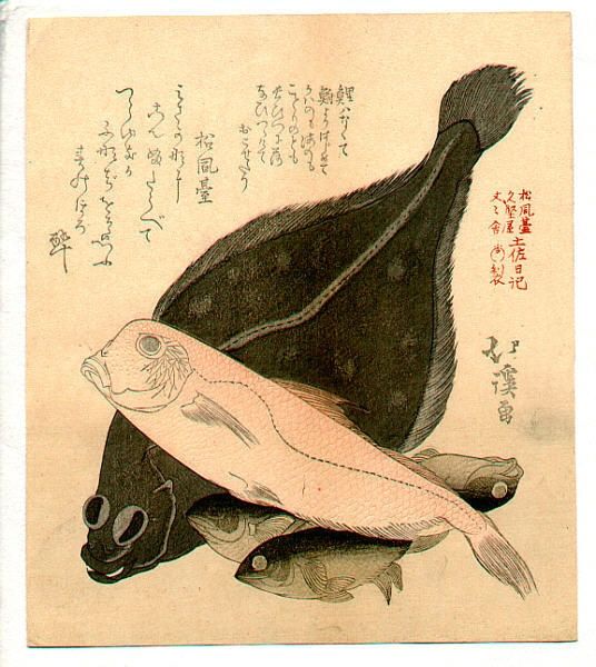 This is Kubo Shunman’s print, Flounder and Other Fishes. Although the print is undated, Shunman was active during the Edo period in Japan, a time of economic growth, strict social order, and flourishing arts. More than just a still life, this print reflects the Edo-period interest in the natural world, intertwined with social and cultural practices. In feudal Japan, where class distinctions were strictly enforced, depictions of everyday life, including food, provided a lens through which individuals could connect with their immediate environment. Food was not merely sustenance; it was a marker of identity, class, and regional culture. The poem inscribed on the print enhances this connection, speaking to a shared aesthetic sensibility. What is the relationship between the human and the natural? How do we give value and meaning to the things around us? This image is quietly radical; it elevates the ordinary and encourages us to find beauty in the mundane.