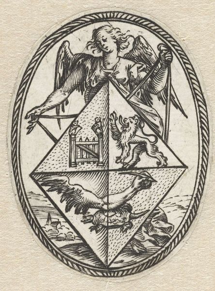 Curator: It's almost as if it's a challenge, isn’t it? This work by Hieronymus Wierix, dating from 1560 to 1619, pulls you in with a sense of graphic intensity. It's titled "Christ's Robe Surrounded by the Instruments of the Passion." And indeed, it’s precisely what you see: Christ’s robe front and center. Editor: Overwhelming. In its stark black and white detail. I feel almost bombarded by objects. Each little cross-hatched element jumps forward, fighting for my attention. It’s dramatic, unsettling...and incredibly intricate. Curator: It’s an engraving, mind you, ink on paper, so Wierix achieves such an incredible degree of meticulousness. Considering its era, the detail is stunning. Everything from the rooster at the top to the lance at the bottom has symbolic weight. Editor: The labor involved must have been significant. All those cuts on the metal plate. I imagine the printmaking workshop where this was made, the apprentices, the smell of ink... Did he have specific patrons? I’m wondering about the market and how these engravings circulated, and to what ends? Curator: Surely, religious devotion. Wierix was known for his, shall we say, orthodox views. But there’s a lot to unpack here, even beyond that aspect. Consider, for instance, how the ladder—a symbol of Christ’s descent from the cross—competes for your attention with the dice that Roman soldiers used to gamble for his robes. There’s such an emotive power held within these instruments, so beautifully, perhaps disturbingly rendered. Editor: Disturbed, yes. I keep returning to the material act: the cutting of the plate, the repetitive printing, the paper used, then consider how such scenes justified the church in using the poor and the faithful… how those scenes acted almost as instructions. Curator: Yes, how these prints may have circulated as both devotional aids and even polemical instruments. Art making as material for societal enforcement is ever an interesting question to bear in mind. I think I might not look at passion plays in quite the same way now. Editor: Indeed, and thinking on such labor makes one consider the value extracted from artmaking within the social sphere then, and perhaps even now.