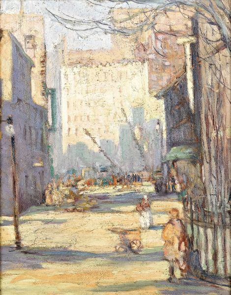 Childe Hassam made Lower Manhattan, also known as Broad and Wall Streets, with oil on canvas. There’s a hazy atmosphere in this painting; the buildings almost seem to be dissolving in the light. Hassam used quick, loose brushstrokes to capture the energy of the city. This feels like a work that's made in the moment, capturing a fleeting impression. Looking closely, you can see how the texture of the paint creates a sense of depth and movement. The colors are muted, but there's a subtle vibrancy to them. See how the sky almost seems to be pressing down on the buildings, and the buildings seem to be rising up to meet it? This all over, open-ended quality reminds me of the work of painters like Turner, who used light and color to create a sense of drama and awe. But where Turner goes for drama, Hassam seems to be embracing the quiet hum of the everyday. Art's not about answers, it's about asking questions, and Hassam leaves us with plenty to think about here.