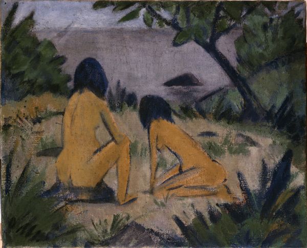 Otto Mueller made this painting, “Two Bathing Girls,” with distemper on canvas. It is held at the Brücke Museum here in Berlin. The subject is two nude women in an open space, surrounded by wild vegetation. The cultural context of the artwork is shaped by Germany in the early twentieth century, a period of cultural shifts, including the rise of the expressionist movement. Mueller was associated with the Brücke group, known for its expressive use of color and simplified forms. The painting reflects the group’s interest in primitivism and the desire to return to a more natural state. The Brücke artists broke away from academic traditions and aimed to challenge the conservative art establishment. The artwork's meaning is deeply linked to its historical context. Art historians use archives, letters, and period publications to gain a richer understanding of the painting's socio-cultural background, revealing that the painting acted as a critique of the bourgeois norms of the time.