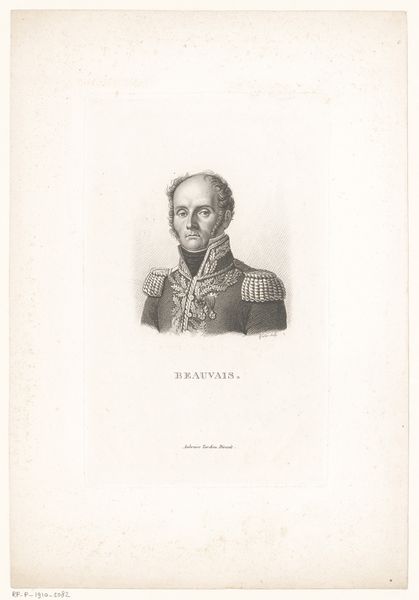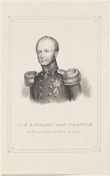 Editor: We're looking at "Portret van Willem II, koning der Nederlanden," from 1831, by Roelof van der Meulen, currently housed in the Rijksmuseum. It's an engraving. My first thought is how… serious it is! The detail in the uniform is amazing, but the overall effect feels very formal. What strikes you most about this work? Curator: What strikes me is the performance of power, darling. Look at the crispness of the lines attempting to define the figure as if chiseled from stone; and, then, this vulnerable man gazes outward through it all! There's such a stark contrast there, isn’t there? The uniform—so much metallic embroidery and pomp, almost bursting with the trappings of military might… but does it successfully mask the tender, somewhat melancholy expression in Willem II's eyes? Editor: I see what you mean! It's almost like he's trying to appear strong but there's a hint of sadness. Do you think that was intentional? Curator: Oh, intentions are such slippery eels! Perhaps Van der Meulen sought to immortalize a heroic leader, as commissioned; or perhaps something more complicated leaked onto the printing plate. Those heavy epaulettes… does their density feel oppressive, or protective? He must have felt exposed by all of that expectation. Editor: That makes me see the portrait completely differently. It's more than just a depiction of a king, it’s a reflection on the burden of leadership. Curator: Precisely! A costume of authority struggling to contain humanity… Makes you wonder what was brewing underneath those buttons and braided cords. Don't you think? Editor: Absolutely. Thanks, I wouldn’t have noticed otherwise!