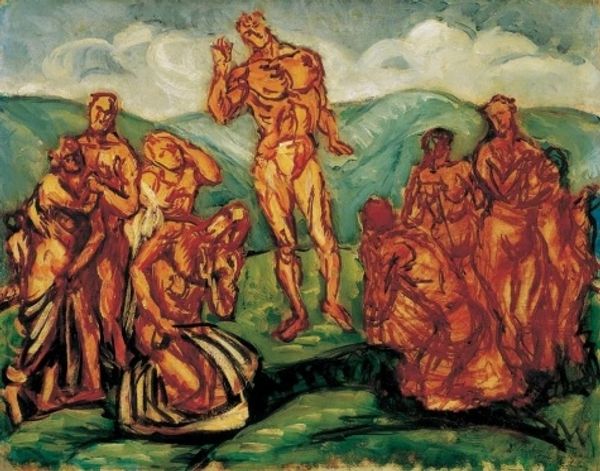 Saturnino Herrán made this painting, Nuestros dioses, with oil on canvas. The colours in this piece are earthy, ochre and raw umber dominate and the figures seem hewn from the very soil, but then there are surprising pale blues and greens in the background that suggest a space beyond the immediate. The application of paint is quite thin and the brushwork is visible, but not overly expressive. Herrán seems to want to describe the figures in a naturalistic way, without too much personal intrusion. Notice the way the figures emerge from the background, their forms defined by subtle tonal shifts rather than stark outlines. It's as if the artist is showing us how we come to understand the world through observation and careful attention to detail. Looking at this piece I'm reminded of the American artist Thomas Hart Benton, there's a similar interest in depicting the human figure with dynamism and a kind of heroic monumentality. However, the subject matter in Herrán's work, with its focus on indigenous Mexican culture, adds a layer of complexity and historical significance. Art isn't just about what we see, it's about how we see and what we choose to focus on.