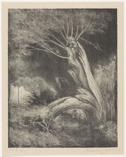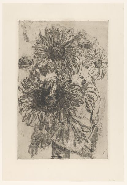 This is Reijer Stolk's 'Artisjok,' a woodcut print held at the Rijksmuseum. It's incredible how Stolk coaxes so much life and movement from a single block of wood, right? The graphic quality of the medium lends itself to bold contrasts, like the way he carves out these crisp, spiky leaves against the soft, hazy background. Looking at the texture, you can almost feel the grain of the wood and imagine the artist's hand guiding the blade. See how some areas are deeply gouged, creating stark black shadows, while others are delicately etched, revealing the subtle greys in the paper. It's a real dance between positive and negative space. I am especially drawn to the upper left of the piece where some of the leaves are etched so fine that they radiate light, like a firework. Stolk’s woodcut reminds me of Emil Nolde, another artist who wasn’t afraid to wrestle with the woodblock and embrace the raw energy of the medium. It’s a reminder that art is an ongoing conversation, a back-and-forth between artists and ideas across time.