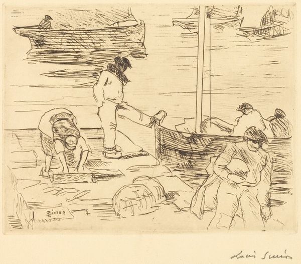 Frank Mason made this Block Island Beach Scene, probably in oil paint. It’s full of light and a tangible sense of a breezy day at the beach, achieved with an amazing and dynamic economy of marks. I love how the paint is both thick and transparent, layered in such a way that it feels like you can see through the surface to the underlayers. It's like looking through memories, each stroke a quick impression. See how the figures are loosely rendered? There's a sense of immediacy, like Mason was capturing fleeting moments. Check out the yellow streak of light hitting the water – it's almost abstract, a pure gesture of color that somehow perfectly conveys the shimmer of sunlight. And then there’s the detail of the foreground beach accessories, painted with a more realistic, careful hand. This reminds me a little of Fairfield Porter, in that he too paints everyday scenes and makes the ordinary feel profound. What a nice painting! It’s a reminder that art is always a conversation.