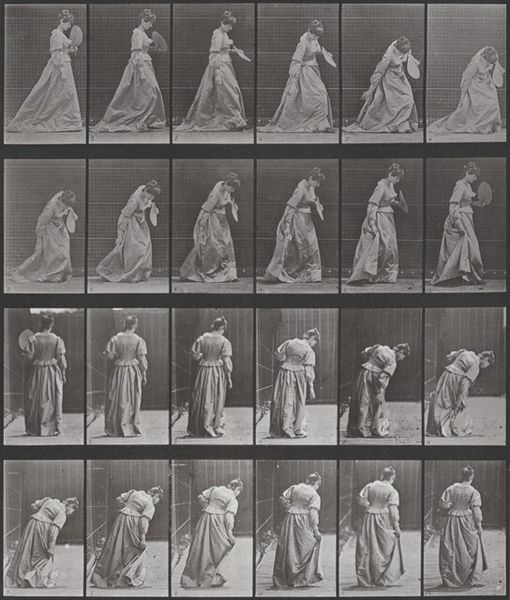 Eadweard Muybridge created this photographic study of a man and woman waltzing to explore the mechanics of human movement. He was working in an era gripped by the desire to capture and dissect reality through science and photography. Muybridge's work reflects the social dynamics of the Victorian era, when gender roles were sharply defined. The woman, in her elaborate gown, is swept across the space by her male partner, who is in darker, more sober clothing. The waltz itself, a dance that was considered scandalous, allowed for a then-uncommon intimacy between men and women. Muybridge's photographs offered a way to examine this dance, breaking it down into discrete, manageable steps. Yet, in its attempt to dissect movement, the sequence also hints at the ephemeral nature of the dance, that fleeting sense of connection. It is a moment of both control and surrender, carefully captured yet ultimately elusive. Muybridge’s work provides a fascinating glimpse into how we negotiate intimacy, movement, and visibility.