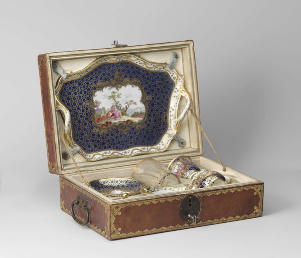 This silver casket, part of a toilet service, was created by William Fowle, who died in 1684. The overall impression is of a meticulously crafted object, its octagonal form softened by the delicate, engraved decoration covering its surfaces. The linear quality of the engraved flora and fauna contrasts with the solid geometry of the casket itself. This tension between form and decoration is critical to the piece's effect. The engravings teem with life, yet they are rigidly contained within the casket's contours. We might consider how the object relates to the structuralist idea of binary opposites: order versus chaos, nature versus artifice. The casket’s very function, to contain and organize personal items, reflects a desire to impose structure on the messy realities of daily life. Note how the reflective surface of the silver interacts with light, constantly altering the casket's appearance and blurring the boundaries between object and environment. The Casket, therefore, exists not as a static entity but as a dynamic interplay of form, surface, and light.
