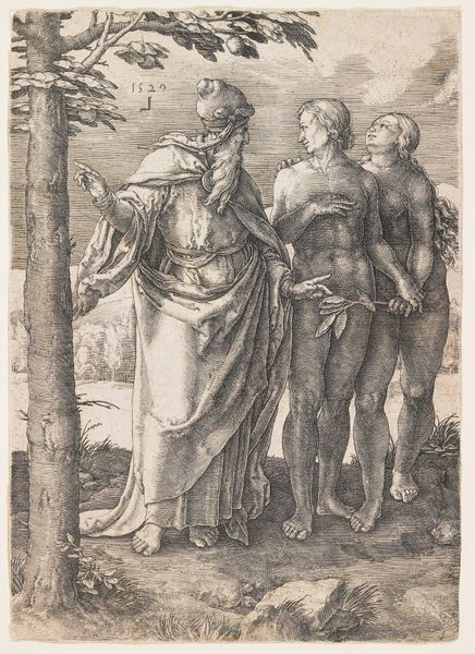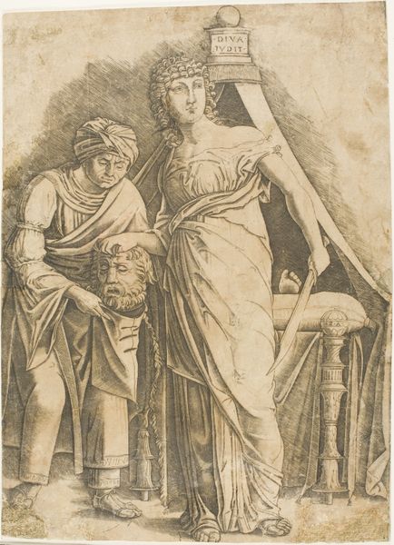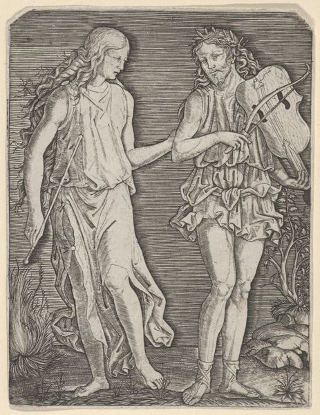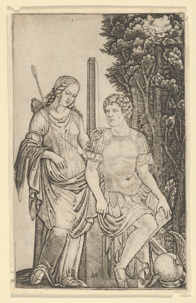 Marcantonio Raimondi created this engraving of Venus Appearing to Aeneas in the early 16th century, during the height of the Italian Renaissance. Here, Raimondi illustrates a scene from Virgil’s Aeneid, where Venus appears to her son, the Trojan hero Aeneas. Look at how Venus, the goddess of love, is portrayed with a gentle touch, guiding and protecting her son. Yet, her power is evident, an arrow at her back, suggesting the dual nature of women at the time. Aeneas, the father of Rome, sits, with a muscular physique, embodying masculine ideals of the Renaissance. The son of Venus, Aeneas embodies the weight of ancestry, legacy, and patriarchal inheritance, while Venus reflects the power, and potential subjugation, of women. Raimondi’s print invites us to reflect on the construction of identity.