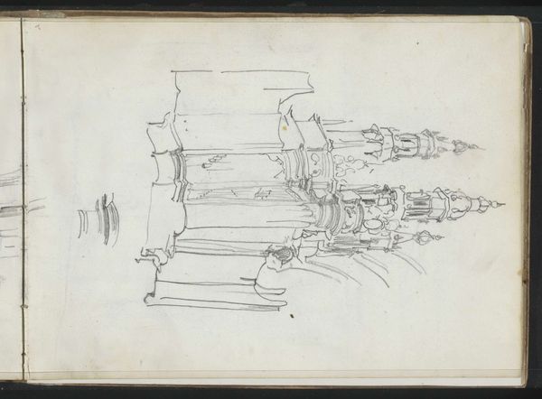 Isaac Gosschalk made this pencil drawing of the choir screen in St. Bavo Church in Haarlem, likely sometime in the late 19th century. The drawing itself, a study of architectural detail, could be considered within the context of 19th-century Dutch art and its institutional settings, such as architectural schools and historical preservation societies. Gosschalk's sketch is more than a mere representation, it is a cultural artifact reflecting the social values placed on historical architecture during his time. The Netherlands in the 19th century experienced a rise in national consciousness, with an increased interest in preserving and celebrating its cultural heritage. Churches, like St. Bavo, were potent symbols of national identity. Architectural drawings like this one served not only as documentation but also as a form of cultural advocacy. The attention to detail and the act of sketching itself highlight a reverence for the past. By studying such drawings, alongside historical records and architectural treatises, we can gain insights into the social and cultural values of the time and the role of institutions in shaping those values.