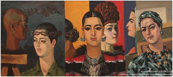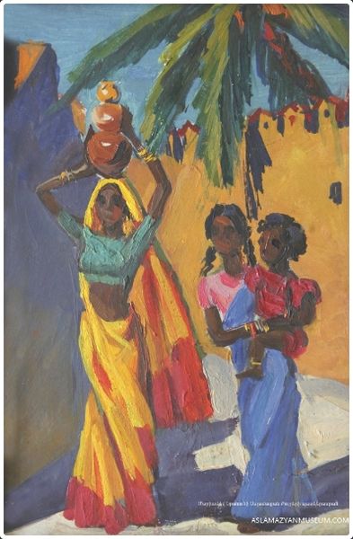 Mariam Aslamazian painted “The Sisters,” a small oil on canvas, sometime during her prolific career. Aslamazian, an Armenian artist who lived most of her life under Soviet rule, often depicted women from various ethnic backgrounds, celebrating the diversity within the Soviet Union. In this intimate portrait, we see two young women, presumably sisters, rendered with a directness that is both tender and forthright. The sister in the foreground meets the viewer's gaze, her expression holding a mix of curiosity and self-assurance. Her gold earring, a subtle touch of adornment, hints at individuality. The younger sister, slightly behind, looks off to the side, perhaps representing a look towards the future. Aslamazian's choice to portray these young women with such dignity challenges the stereotypical representations of women, and women of color, often seen in art. “The Sisters” invites us to consider the bonds of kinship and the unique identities of women within the larger tapestry of cultural exchange and representation. The artwork serves as a reminder of the importance of recognizing and celebrating the diverse stories that shape our world.