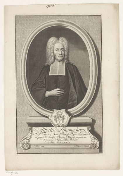 Johannes Hermanus van der Heijden made this print of Nicolaas Ypey at an unknown date using etching and engraving techniques. The portrait’s subject is presented as an educated and established man. Nicolaas Ypey's wig, coat, and clerical collar indicate his status and profession as a theologian in the Netherlands. The paper he holds might allude to his scholarly work. The coat of arms in the upper left corner further signifies his family’s status within Dutch society. This image reflects the hierarchical social structures of the Netherlands, where one’s status was closely tied to family lineage and professional standing. Van der Heijden’s work immortalizes Ypey, reinforcing his position in Dutch history. To fully appreciate this artwork, a study of Dutch social history, particularly the role of religion and family lineage, would be invaluable. Such research can reveal how individuals like Ypey navigated the social structures of their time, and how artists like Van der Heijden contributed to the creation and perpetuation of their legacies.