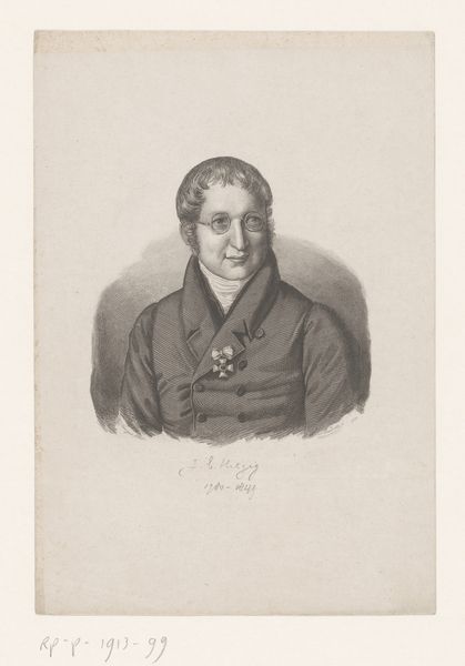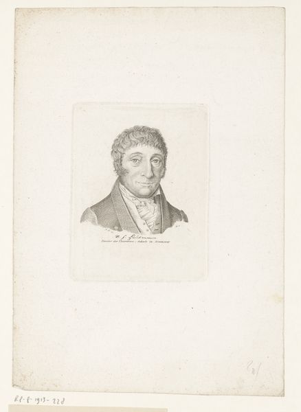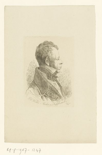 Editor: Here we have P.C. Skovgaard's "Major Blom," an ink engraving from 1848. It’s quite a striking portrait, even with the limited use of line. The subject’s gaze feels both intense and weary. What symbols or cultural references do you notice in this piece? Curator: I'm drawn to the man's head covering. It is not simply utilitarian. He wears the *casquette*, also referred to as a forage cap. Consider what such a recognizable object signifies, then and now. Editor: So, the hat tells us something about his identity. What does that reveal to you? Curator: In the mid-19th century, this cap symbolized the bourgeoisie in European society. Wearing it here shows how one saw themself, which then allows others to do the same. Note, too, how Skovgaard portrays Major Blom, fixing his hand just inside his jacket; what might *that* imply? Editor: Perhaps a sense of personal restraint, or even a discomfort being seen. Curator: Precisely! Skovgaard's attention to these visual cues constructs not just a likeness, but a psychological profile steeped in the conventions and contradictions of the era. And consider the date; 1848 was the year of revolutions. Editor: That context enriches my interpretation so much! The portrait becomes a study in social anxiety during a time of upheaval. I never would have picked up on the cultural relevance of his hat without your insight. Curator: The objects we choose to wear and the ways we carry ourselves carry cultural memory with them. And the most fascinating part? These symbols never stay static.