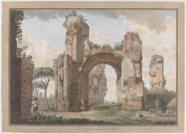 Joannes van Doetechum created this print of the Baths of Diocletian in Rome sometime before 1605, using etching and engraving techniques. The print captures the emotional weight of witnessing a civilization's decay. What was once a symbol of Roman power and engineering is now presented as a picturesque ruin, a scene that speaks to the transient nature of human achievement. Doetechum's print is a product of its time, reflecting the cultural movement to rediscover and reimagine classical antiquity. The ruins are not just stones; they are imbued with the Renaissance era's fascination with the past. The figures populating the scene—seemingly oblivious to the grand history surrounding them—add a layer of contemporary life to this historical tableau. The Baths of Diocletian, in their ruined state, prompt us to reflect on how power, culture, and identity are constructed, celebrated, and ultimately, transformed by time. They stand as an emotional and intellectual bridge between the grandeur of Rome and the reflective spirit of the Renaissance.