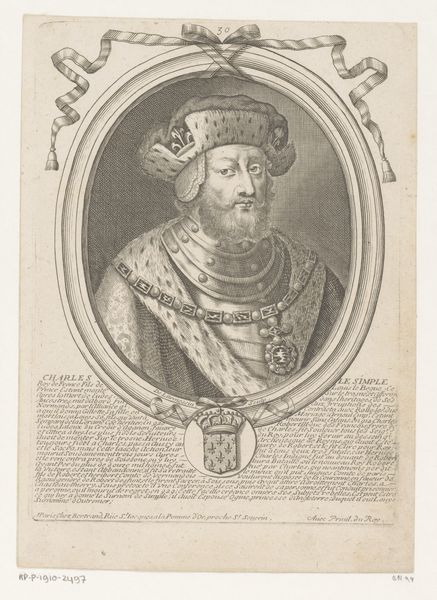 Editor: So this engraving, "Portrait of Charles de Gondi," from sometime between 1722 and 1800 by Louis Moreau, really strikes me. It's so intricate, with all the fine lines, and the details in his clothing seem to highlight his status. What catches your eye about it? Curator: I’m interested in how the very *process* of engraving here informs the meaning. Think about the labor involved. This wasn't a quick sketch; it was a meticulous, time-consuming task to translate an image of power into a reproducible form. How might the act of replication – creating multiple images of Gondi – influence or dilute his authority? Editor: That's an interesting point. I hadn't thought about the act of reproduction affecting the power of the subject. Was engraving a common way to disseminate images of nobility? Curator: Exactly! Engraving allowed for a wider circulation than a unique painted portrait. But consider the material conditions. Copper plates, inks, paper—these materials had costs and associations. The resulting prints become commodities, consumed by different social classes. Who had access to these images and what did they *do* with them? Did this commodification empower the sitter or did it, ironically, make them more accessible to criticism or parody? Editor: So, you’re saying the engraving process wasn't just about creating an image, but about participating in a social and economic system? Curator: Precisely. The image is intrinsically linked to the labor of its creation, the materiality of the print, and the socio-economic context of its distribution. Looking closely, what evidence can we gather to interpret the networks involved in bringing this image into being? Editor: That gives me a whole new way of looking at this! I was just seeing the surface-level representation, not thinking about how it was actually produced and consumed. Curator: The “how” is often more revealing than the “what.”