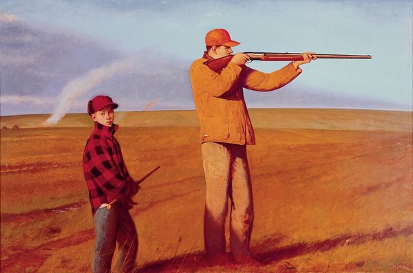 Editor: Here we have "Farmer with a Pitchfork," an oil painting by Winslow Homer. Although the exact date is unknown, it’s a striking image. There's something almost confrontational in the way the farmer is presented from behind, yet simultaneously anonymous and ordinary. How do you interpret this work? Curator: This piece immediately speaks to the complexities of representing labor, particularly in late 19th-century America. Homer often depicted rural life, but not without a critical lens. Notice how the farmer is framed – his face is obscured, almost erasing his individuality. Editor: Yes, he becomes almost a symbol. Curator: Precisely. Consider the social context: post-Civil War, the rise of industrialization, and changing agricultural practices. Who did this land belong to? Homer is making a commentary on the often invisible labor that built, and continues to sustain, the nation. This farmer is a cog in a bigger, perhaps unjust, system. Do you feel that the artist romanticizes his subject? Editor: I'm not so sure, especially knowing this historical context. The dim colors surrounding his silhouette don’t come off as classically beautiful. It feels more melancholic, even. Curator: Exactly. The painting highlights the farmer's alienation. Even his bright shirt fails to convey joy. The impressionistic style, while beautiful, is also used to soften his identity, blurring him into the landscape itself. How does that inform our view of this occupation? Editor: So, what seemed like a straightforward image becomes charged with social and political commentary. It encourages a critical examination of the relationship between land, labor, and identity. Curator: Indeed. It invites us to think about who is visible, who is not, and who benefits from their labor. Editor: This conversation changed the way I looked at Homer's work, adding so much complexity. Curator: For me as well. I learned a great deal about understanding paintings through historical contexts and using an intersectional approach to look at how labor is constructed within society.