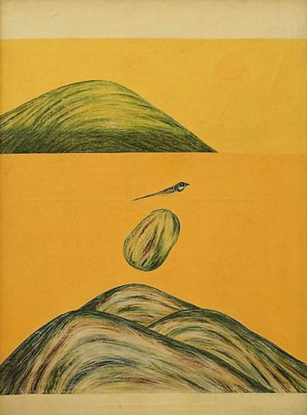 This painting presents a serene landscape dominated by stylized natural elements. The most striking is the lily, centrally placed, a symbol of purity and rebirth across cultures, from ancient Egypt to Christian iconography where the Madonna lily embodies the Virgin Mary’s innocence. Note how the artist has situated the lily within a broader setting featuring a bird perched atop a floating form. This recalls the symbolism of birds as messengers, linking the earthly and spiritual realms, an idea echoed in numerous mythologies. Consider how the bird motif reappears, albeit transformed, in modern surrealist works where it becomes a symbol of freedom and the subconscious. Such imagery is deeply rooted in our collective memory, evoking primordial connections to nature and spirituality. These are not merely aesthetic choices, but potent symbols engaging our subconscious, stirring emotions tied to our deepest cultural narratives. The painting thus becomes a canvas where ancient symbols are revived, reminding us of the enduring power of visual language to transcend time.